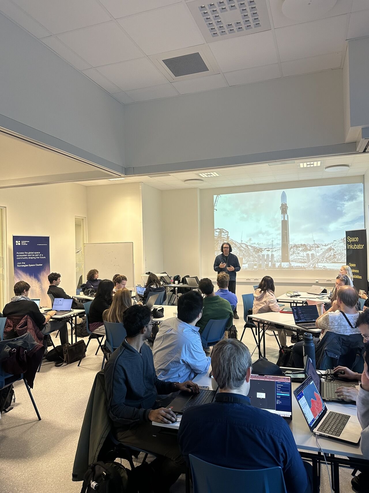Participants represented a broad range of backgrounds, including engineering, environmental sciences, programming, entrepreneurship, and regulatory studies. The hackathon was initiated by Norwegian Space Cluster in collaboration with partners such as Nord University, Tekna, Andøya Space, KSAT, NORSTEC, ESA Phi-Lab Norway, and others, with the goal of strengthening links between students and the space industry in Northern Norway.